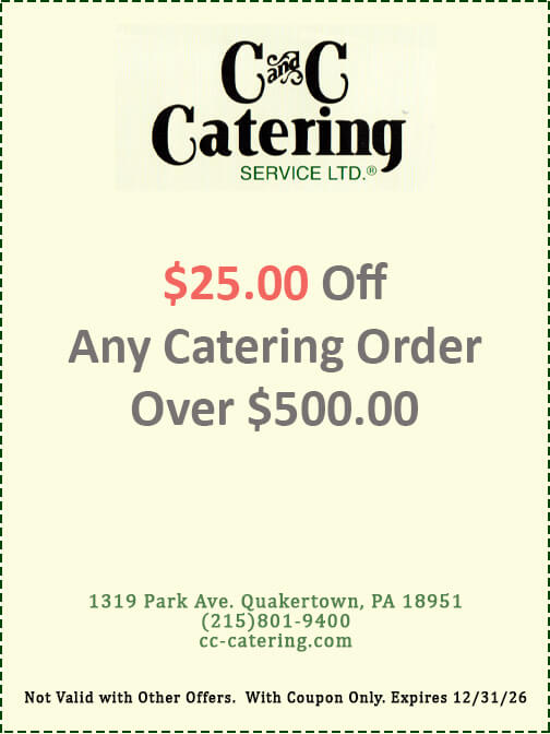 Take $25.00 off any catering order over $500.00.  Not valid with other offers.  With this coupon only